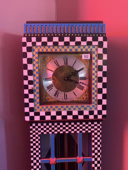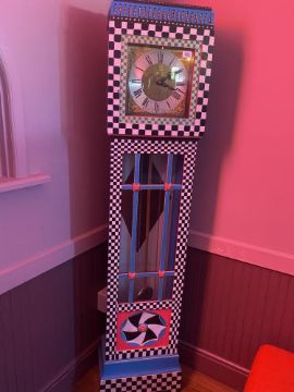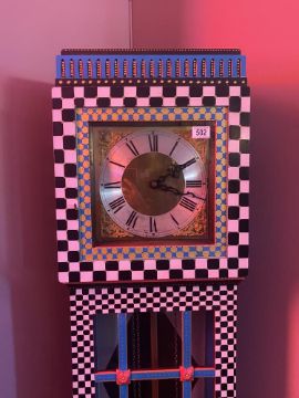 Wacky-themed grandfather clock, approx. 180 cm high.