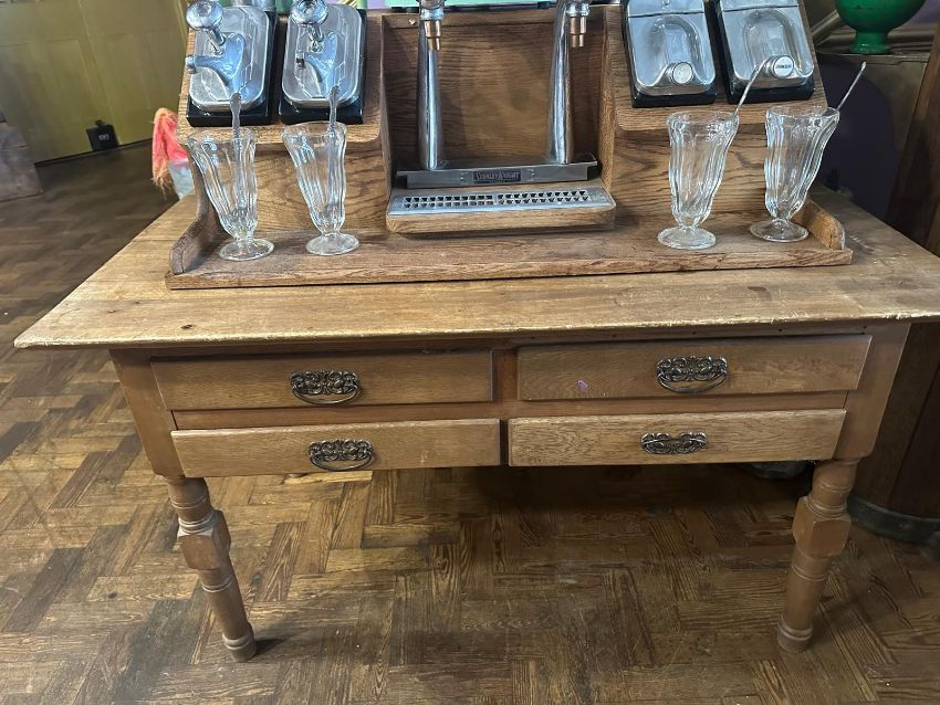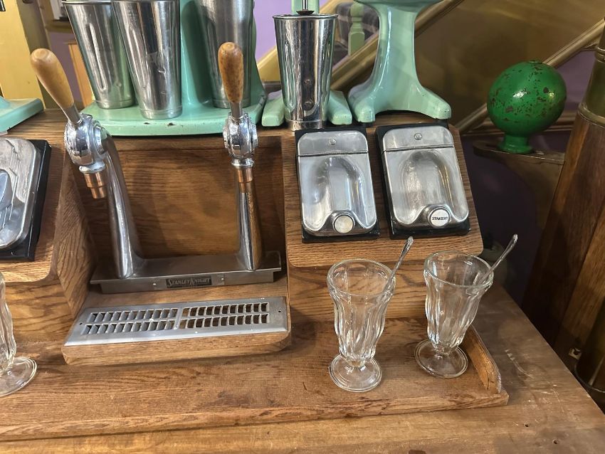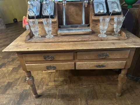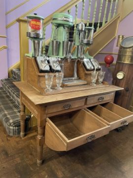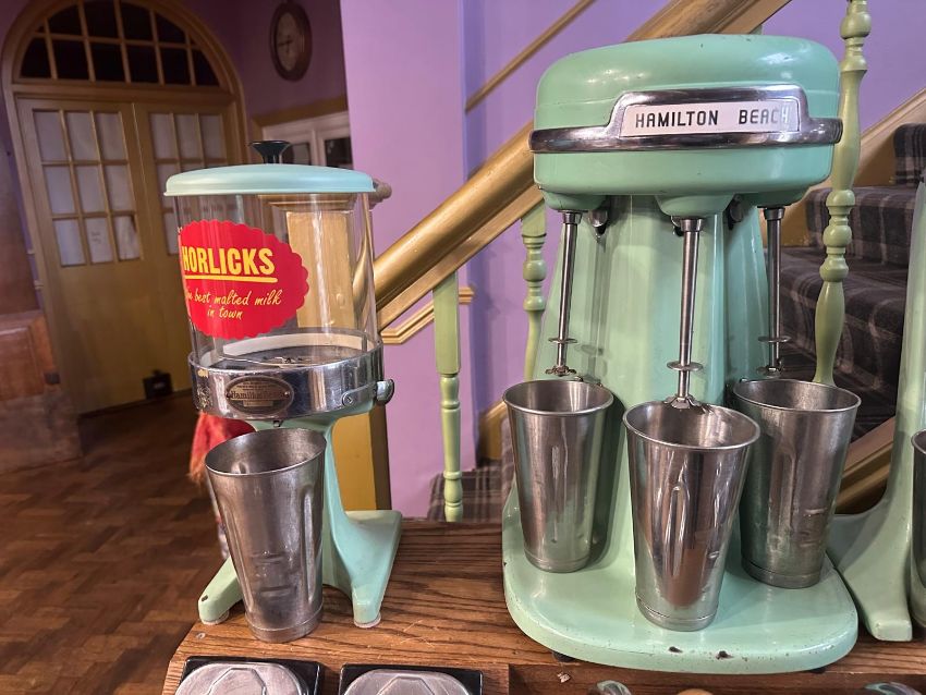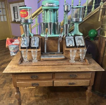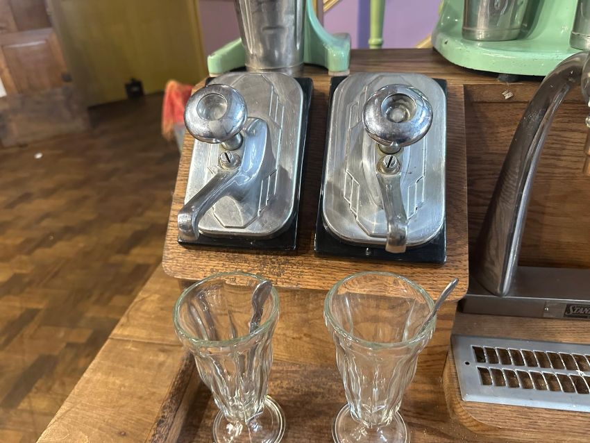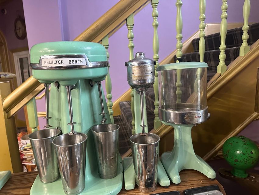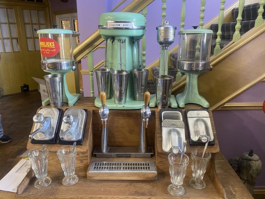 A vintage Hamilton Beach 40DM Milkshake multimixer plus full Stanley Knight Milkshake table and accessories