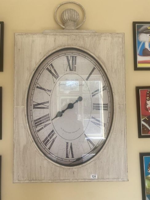 A large pocket watch style wall clock, width 26 inches, height 35 inches