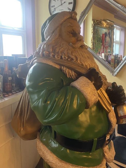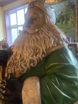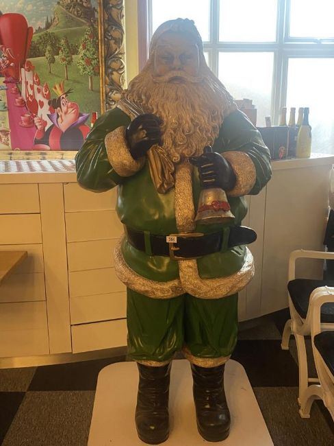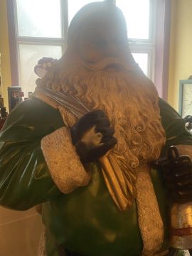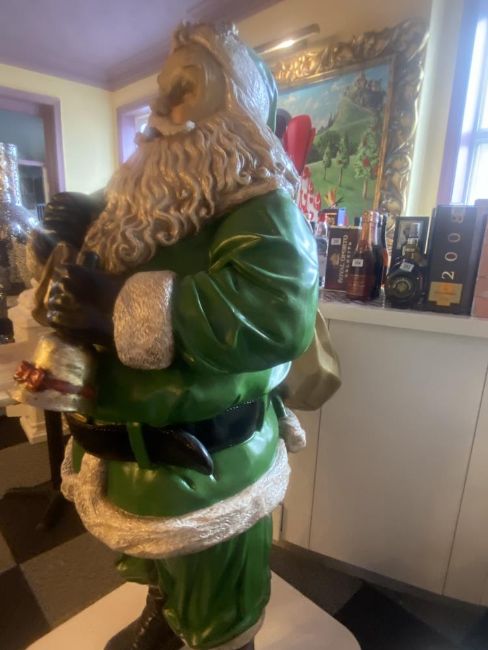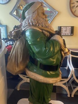 Large Father Christmas Santa Claus figurine in green with bag measuring 74 inches high.